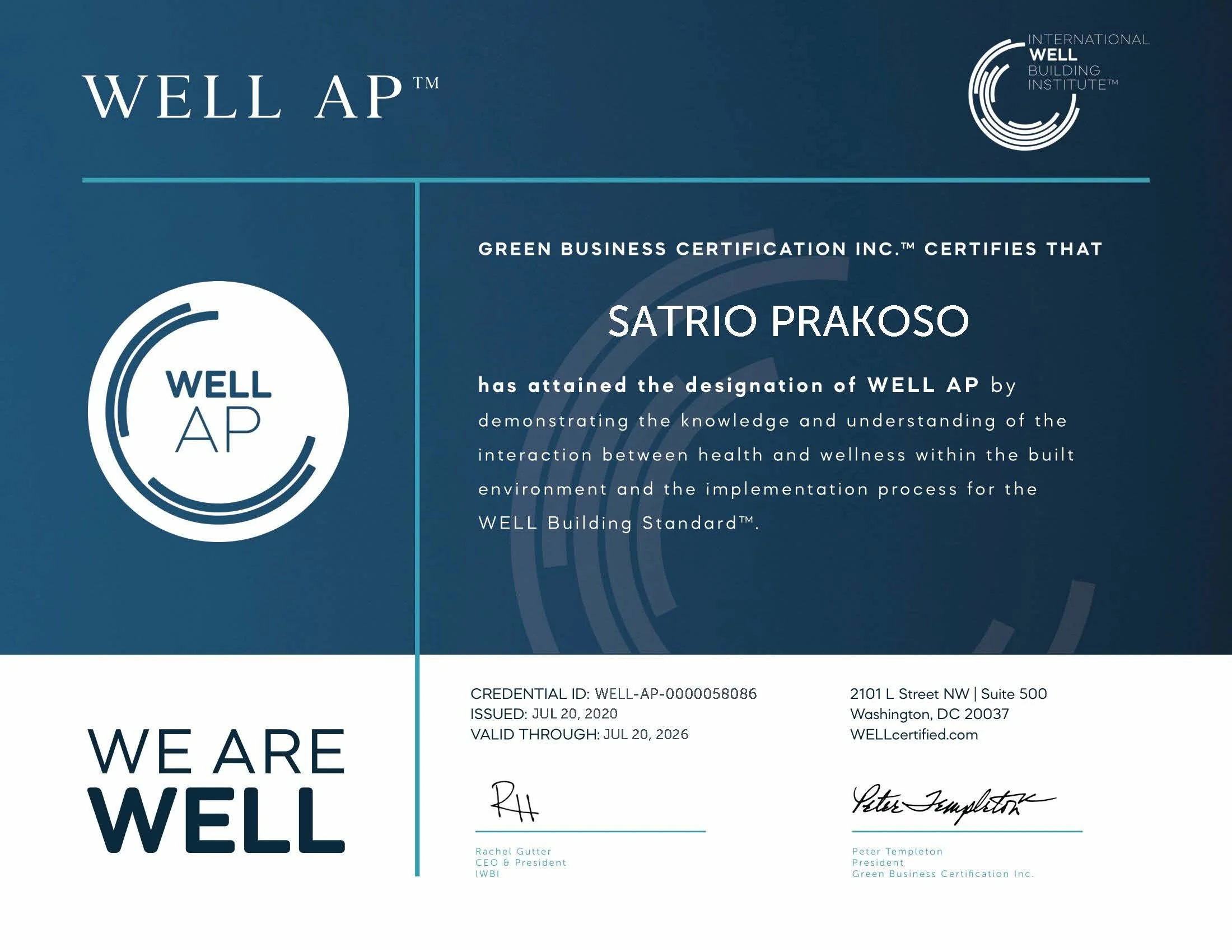Our in-house WELL Accredited Professionals (WELL APs), Satrio Prakoso and Mirza Annisa, are experienced in integrating health and wellness strategies into building design and operations. They guide projects through the WELL certification process, ensuring that spaces promote occupant well-being and meet the highest performance standards.